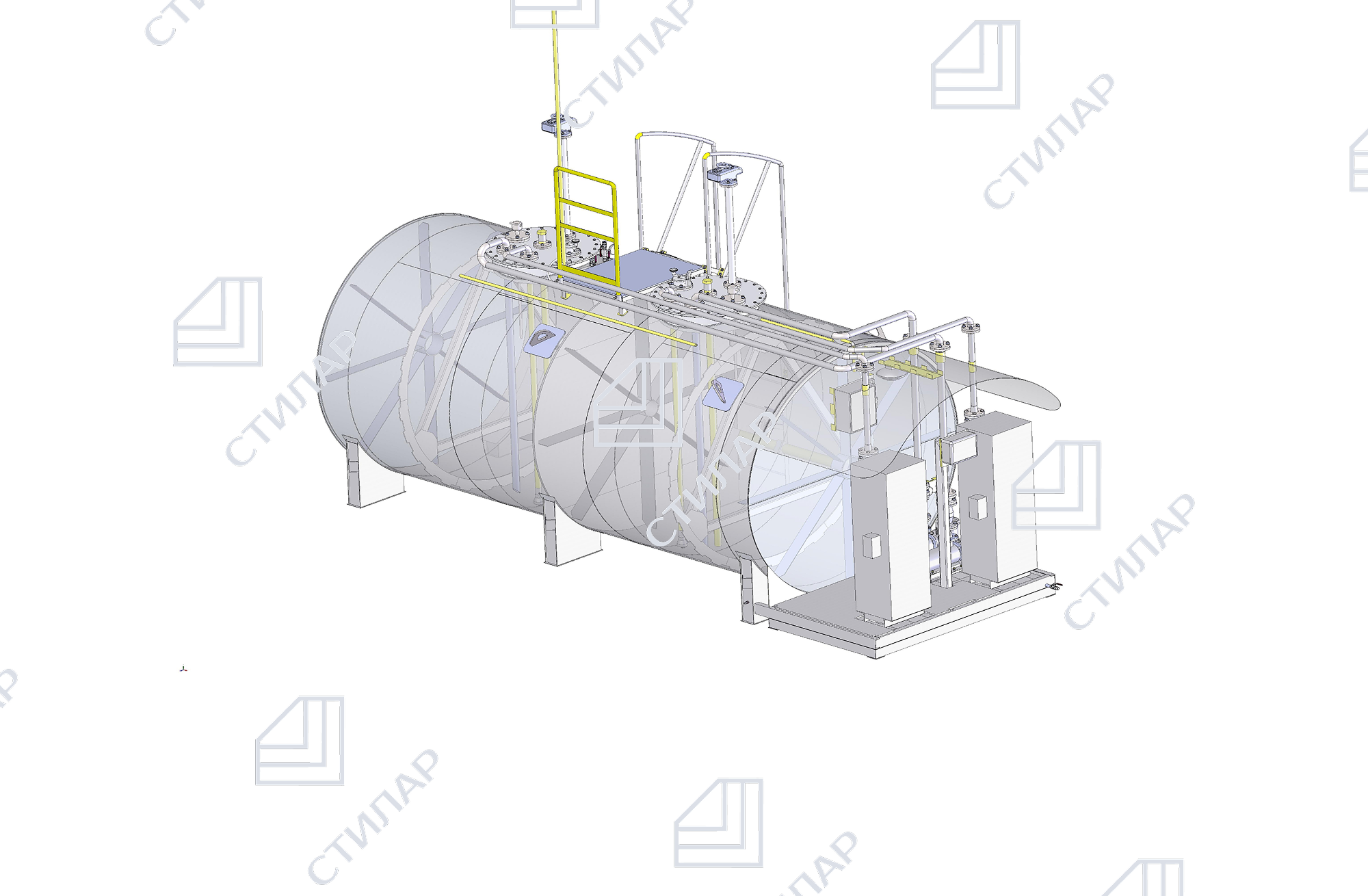 Резервуар двустенный двухсекционный резервуар объемом 15 м.куб. (сталь Ст3 4/4мм, система контроля межстенного пространства с сиреной, азот)